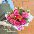 Букет из розовых и желтых роз