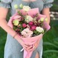 Коробка розовых и кремовых кустовых роз