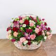 Белые гвоздики и розы в коробке
