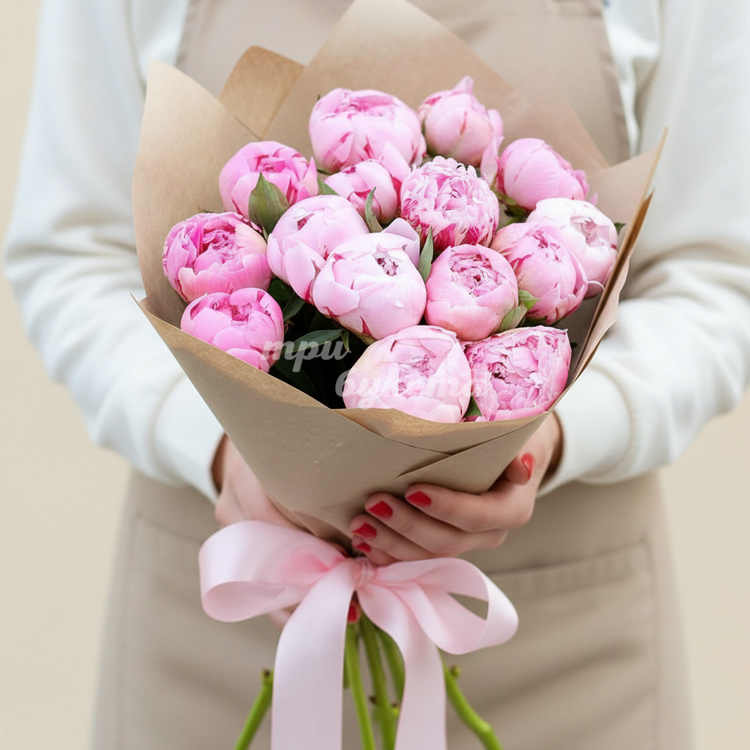 Букет из 15 пионов в крафте