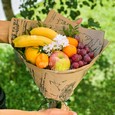 Букет из бананов, винограда и роз