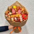 Букет из бананов, яблок, груш и роз