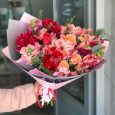 Букет из розовых пионов и роз