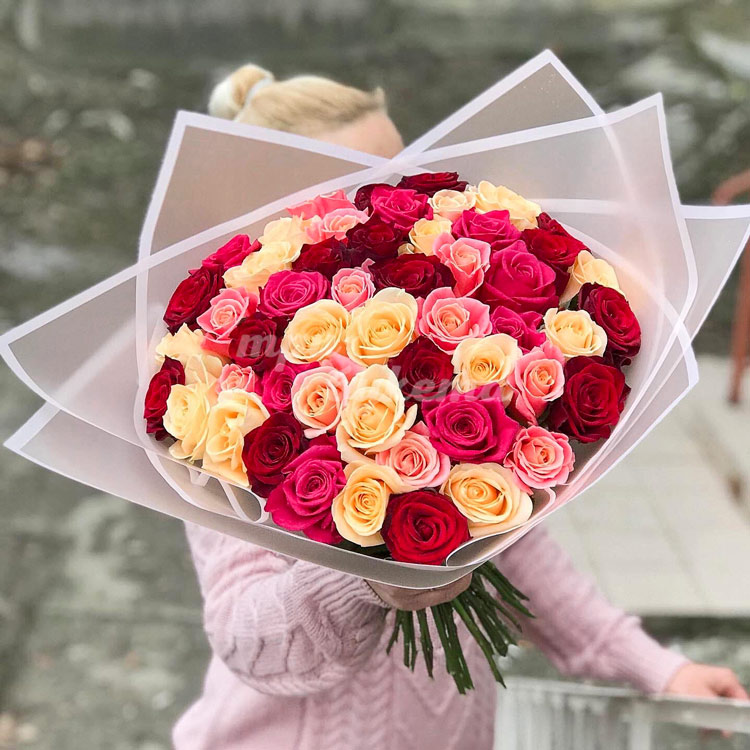 Букет микс из 51 разноцветных роз