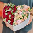 Коробка-сердце с розовыми гвоздиками и розами
