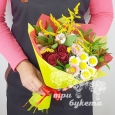 Корзинка с эустомами и сухоцветами
