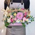 Розы и гвоздика в ящичке