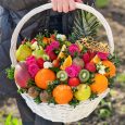 Желтая коробка с розами, протеями и заленью
