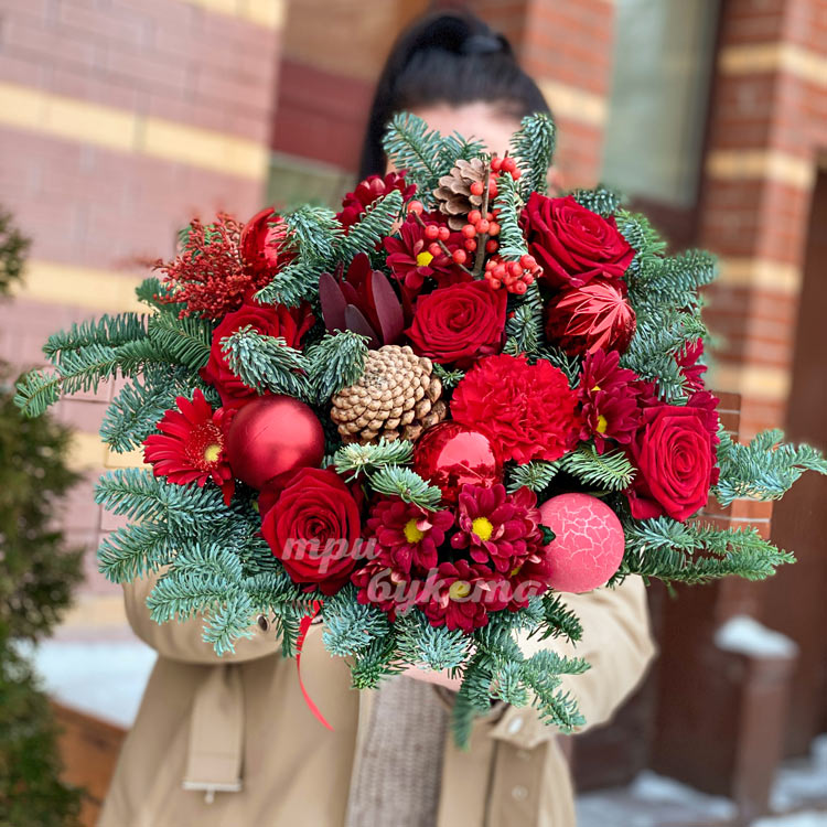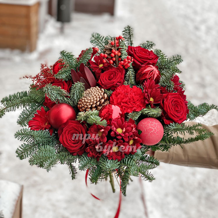 Зимний букет из шаров и цветов
